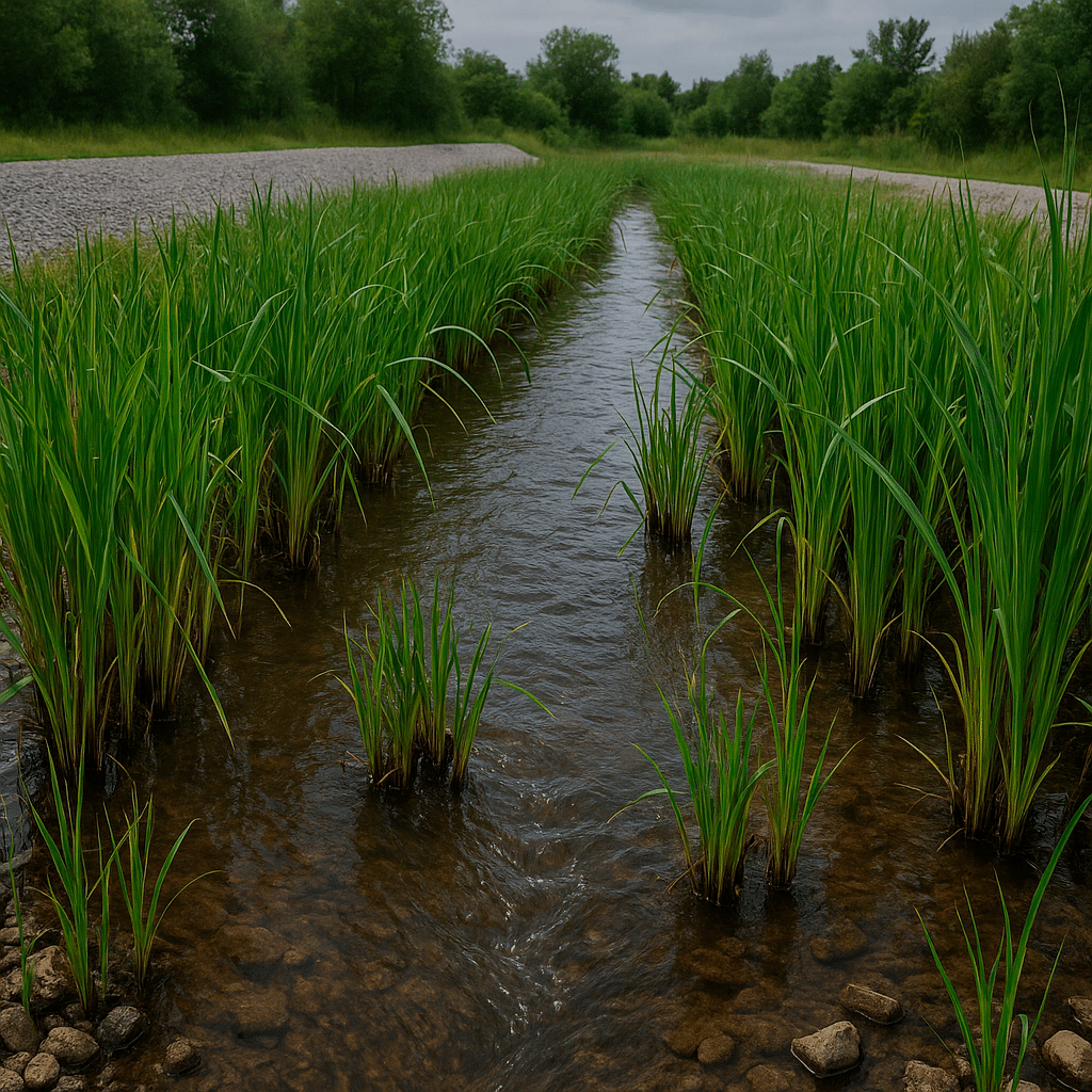 Vegetación: especies locales emergentes o acuáticas, que absorben nutrientes y estabilizan el ecosistema.