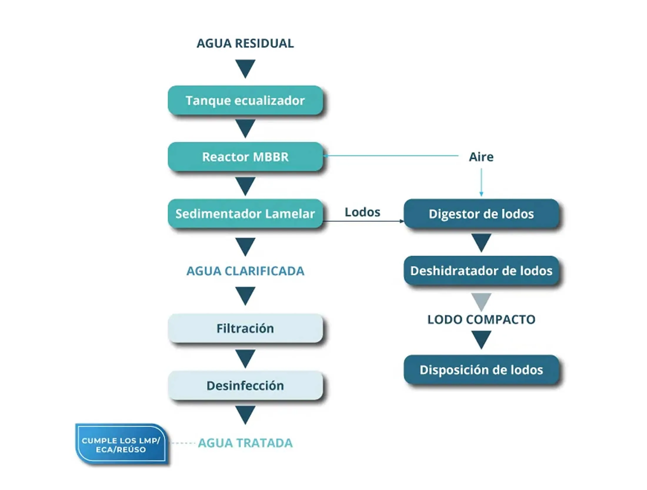 Homogeniza los contaminantes y regula las variaciones de caudal, evitando que los picos afecten el tratamiento biológico.
